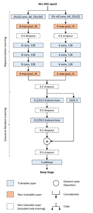 위의 그림 1.을 보면 DeepSleepNet의 모델 구조를 파악할 수 있다.