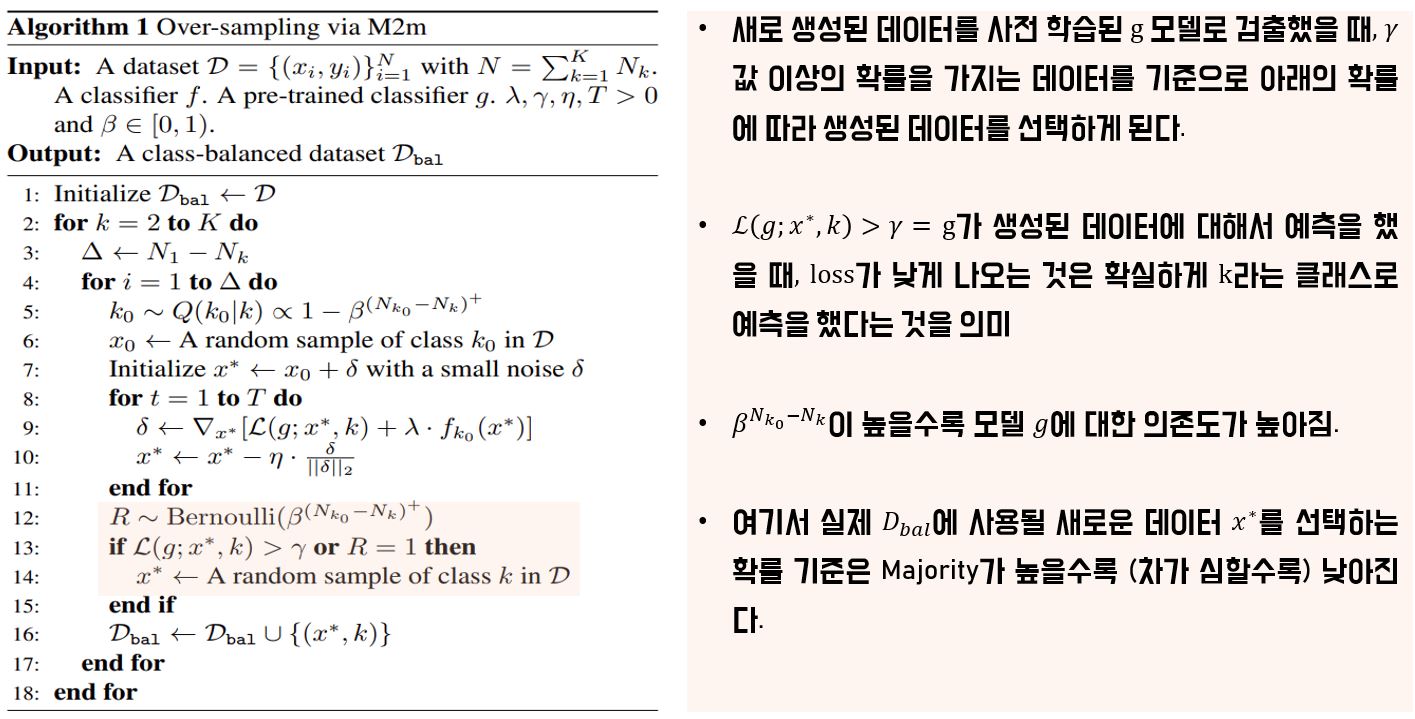 Majority 샘플은 인조 minority 샘플로 변환될 수 있으며 그것을 활용하여 최적화를 진행할 수 있다. 해당 데이터로 학습시킬 경우 majority class에 영향을 주지 않는다.