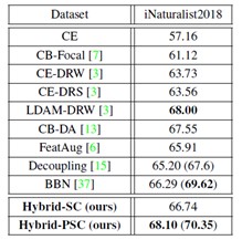 - Long-tail image classification을 위한 Hybrid network를 제안함으로써, 해당 방식은 feature learning을 위한 "contrastive learning"과 classifier learning을 위한 "cross entropy loss"로 구성되어 있다. 해당 방법에 curriculum을 추가함으로써 좋은 features을 만들어내는 것을 학습함으로써 classifier learning의 성능을 높일 수 있다.