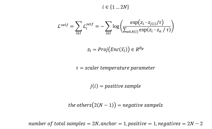 - 이전 Memory bank method를 활용하는 것이 아니라 batch 안에서 positive sample과 negative sample을 활용하기 때문에 Batch 단위로 sampling을 수행하게 된다. 여기서 가장 충요한 점은 i의 개수가 2N이라는 것이다. 왜 Batch size가 N인데 i의 크기는 2N인가에 대해서 생각을 꼭 할 필요가 있다.