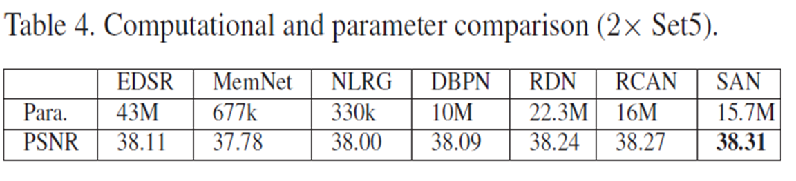 - SAN은 SISR에서 SOTA를 얻었다.