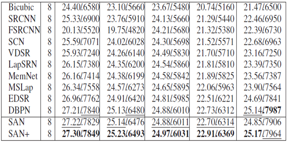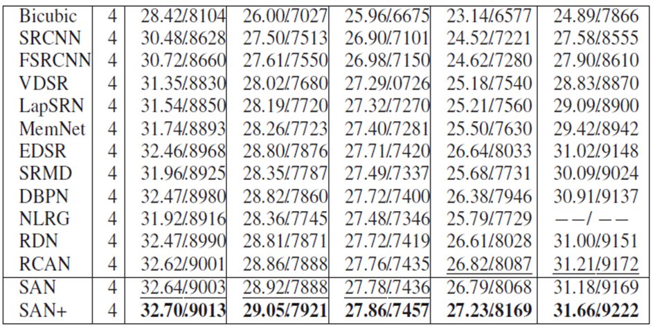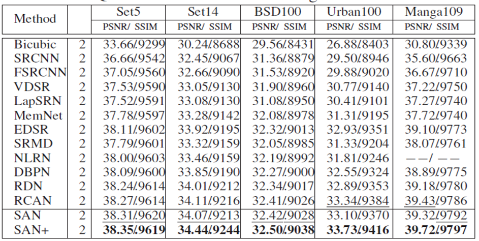 - SAN은 SISR에서 SOTA를 얻었다.