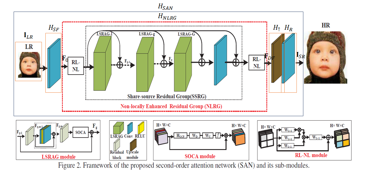 - 이 문제를 해결하기 위해서 feature 표현과 feature 관계 학습에 보다 강력한 SAN(second-order attention network)을 제안한다.